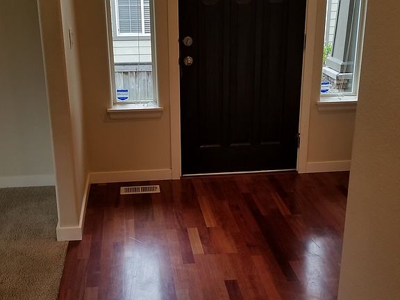 Cute newer 2 story with attached 2 car garage. 9 foot ceilings on main level. Upgraded millwork. Hardwood flooring in entryway. Covered entry. Concrete patio. Gas fireplace with remote control in living room. Great location away from the main street. [Home Energy Score = 8. HES Report at https://api.greenbuildingregistry.com/report/pdf/R547809-20180424.pdf]