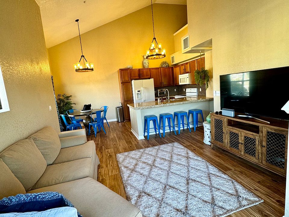 Move in ready condo in the desirable Stonegate community offering peaceful park views. Vaulted ceilings throughout, second floor loft (perfect for a home office, workout room, play area or non conforming second bedroom), outdoor balcony storage closet (see photo), coat closet, linen closet and much more! The primary bedroom offers a large walk-in closet with built-in shelving. Washer/dryer included in unit. Condo includes 1 reserved parking spot, access to 3 community pools/hot tubs, clubhouse, tennis courts, etc. Furnished options available for an additional charge. 12 month lease term. Security deposit is equal to one month's rent upfront. 1 reserved parking space included and plenty of on-street parking available. HOA fees, sewer, water, trash and all neighborhood amenities included. Renter is responsible for cable, internet, electricity and gas. No smoking in the home. Pets allowed on a case by case basis with deposit(s) required.