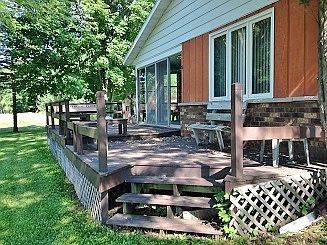 Custom 3 bedroom ranch home. Beautiful lot with Kelly Lake only 1 block away. Open floor plan, extra wide hallways. Master bedroom with attached bath. 3rd bedroom has built in shelving. There are many closets & a large sunny living room. The kitchen has newer appliances & a large pantry. Features: 3 season sun room off dining & large deck for summer fun! A full basement for entertaining with a bar area, full bath & outdoor access. Entire home built to be completely Handicap Accessible including Hallways, Doors, & Bath.Additional 20x28 garage. Oconto Falls Schools!