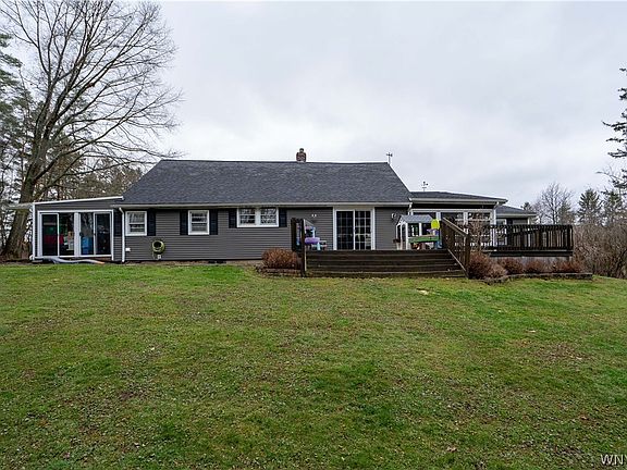 3 beds, 1 1/2 baths ranch on 8 acres! Ideal layout with open floor plan, gas fireplace in the living room for added coziness, laundry on the first floor, 2 car attached garage and 2 enclosed porches, 1 with heat! Many updates include: flooring, paint, new furnace (January 2024), 200 amp service, blacktop driveway, blown in insulation, siding and many new windows! New back sliding glass doors to the open deck overlooking the huge backyard for tons of privacy! Wooded lot to hunt or hunt the state land down the road or obtain a permit for hunting Letchworth State Park just down the road.