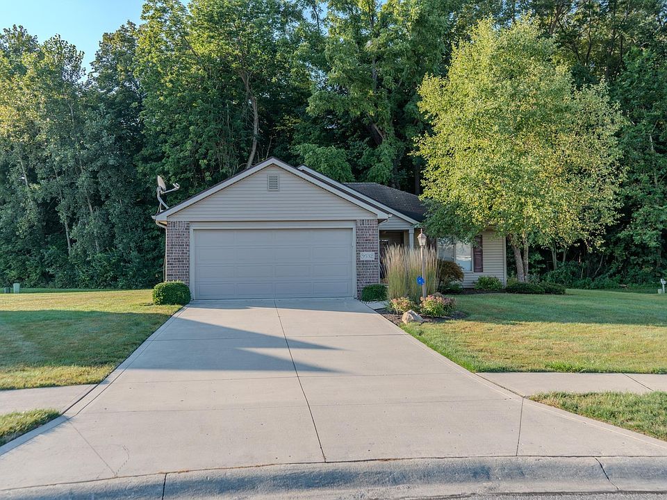 This cul-de-sac villa has a scenic view from the three-season room screened porch overlooking the woods. Foyer entrance opens to a spacious great room and the kitchen features a breakfast bar, pantry and cabinets with pullout shelves. Oversize primary bedroom has a huge 14x7 walk-in closet with drawers and shelves. Handicap friendly with large doors, wide main bath, double shower with grab bars and zero entry steps. Washer and dryer remain. Anderson windows, and owner installed gutter guards. There is an attached 21x21 2 car garage. Quarterly dues of $400 cover lawn mowing and snow removal, trimming of bushes and mulch (front of home only). This property is located close to Chapel Ridge shopping center, close to I-469 and just down the road from New Haven.