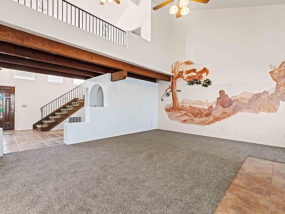 This beautiful Move-In ready two story Spanish style custom home nestled on a hill of a secluded place with panoramic view situated on 2.5 acres corner lot in California City. This home can be a great starter home Or vacation home for those who wish to get away from the hustle and bustle of the big crowded city and looking for tranquility, peaceful place, and a quiet weekend retreat. This is it! Look no further! This custom home is 3934sq.ft and has 5 bedrooms and 3.5 bathrooms with newer paint almost entire home. There are 3 large-sized bedrooms and a master suite downstairs. There is another master suite upstairs. There is also a big loft with closet upstairs that can be used as a 6th bedroom. Grand entry with Spanish tiles flooring. Family room has high ceiling and a cozy fireplace ready for the cold day. Kitchen is spacious with ample cabinets for storage. A huge kitchen island conveniently displays foods for big family. A walk- in pantry is for every homeowner's dream. Formal dining room, and living room. Large covered patio is perfect place for outdoor gatherings and enjoy the amazing view of the mountain and the twin buttes. A very nice outbuilding that can be used as detached garage or workshop. It fits one car and yet still has plenty space left for some hobby works. It also has a washing sink and 1⁄2 bath not included in the house. This home is close to Hwy 58 that provides a great quick access for commuters. Please come to check it out and appreciate the serenity of the surrounding area.