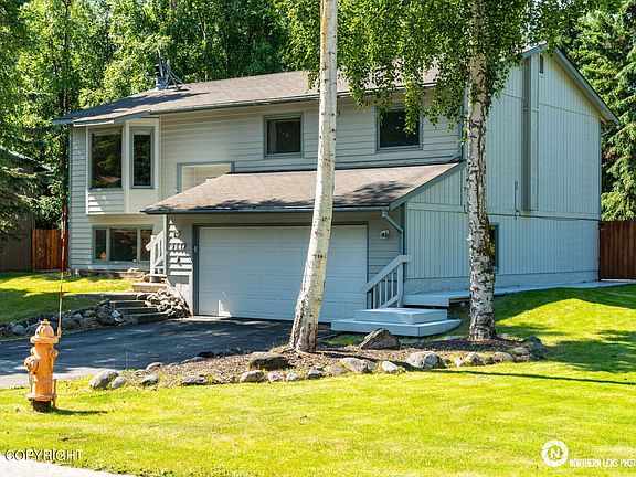 Large 4 BR home in desirable Eaglewood Estates. Hardwood floors and fireplace in the LR plus a rec room with (gas) wood stove. New furnace and asphalt driveway in 2020, new deck on private corner lot. Located just a few steps from running & walking trails in safe cul-de-sac. Private back yard with shed, mountain views and just 12 miles to JBER.