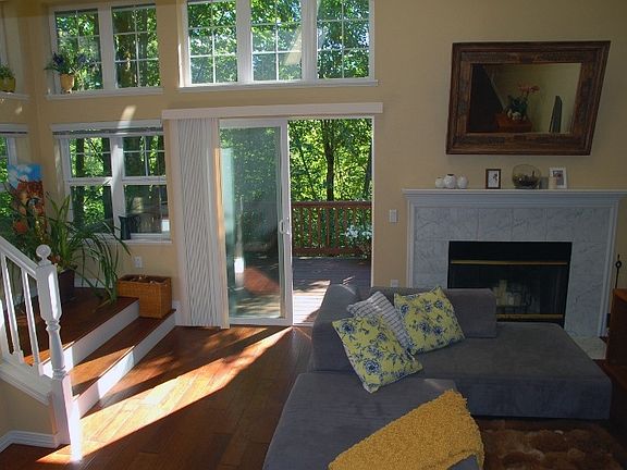 Come home to enjoy the peaceful and quiet setting of this townhome with great natural light. Listen to the seasonal sounds of the stream from the deck which backs to greenspace. This home features: hardwood floors through main level and stairs, vaulted ceiling, deck, wood burning fireplace, large master suite w/ custom closet organizer. Private long driveway with parking for up to 4 cars including the garage. Neat and clean throughout even polished garage floors. Enjoy miles of community walking trails through 200+ acres. Near Forest Heights Village Center with Starbucks and shopping. Near Nike, Columbia, Intel, freeways, & downtown Portland. Excellent schools!