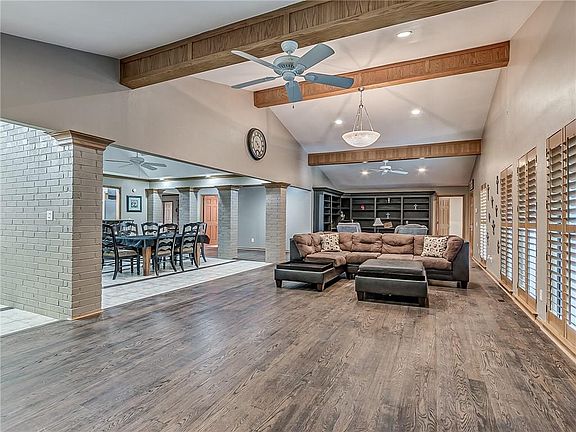 Stunning home on 1 ACRE in Carl Albert Schools. This home is absolutely loaded with high-end features and has been almost completely remodeled & updated. 5 bedrooms, 3.5 bathrooms, 3 car garage with 2 master suites, a very large kitchen,, living room, and den. Hardwood floors, interior brick accents, wood beams, built-ins, plantation blinds, custom woodwork, grand entry with circle drive, and back entry. Huge covered patio with custom features on a beautiful 1-acre lot! Has a large back yard with an in-ground pool, volleyball court, horseshoe pit, and storage bldg. Located close to Tinker AFB, Boeing, Highway Access, shopping, dining, parks, golf course, and more.