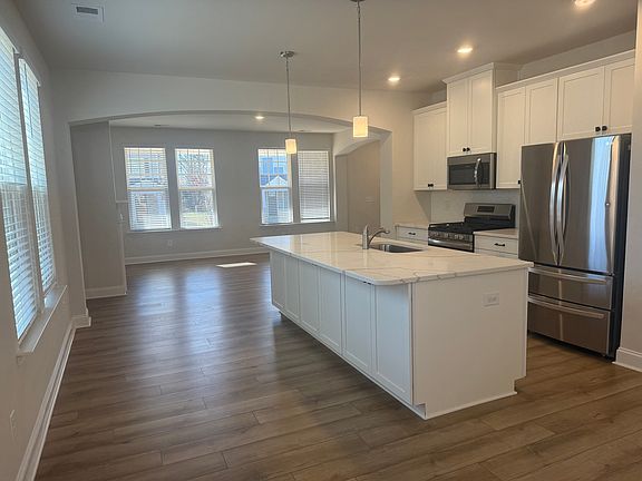 Discover the elegance and convenience of The Burnham, a beautifully appointed new home designed with a primary bedroom on the main floor a rare find in today's market. This thoughtfully planned residence features three additional bedrooms and a bonus room on the upper floor. Ceilings: Enjoy 9 ft ceilings on both the main and upper floors. Living Space: A spacious great room seamlessly opens into a stunning gourmet kitchen. Kitchen: Equipped with white kitchen cabinets, Carrara quartz countertops, a herringbone tile backsplash, and a gas oven, perfect for culinary enthusiasts. Flooring: Durable and stylish LVP flooring spans the entire main floor. Outdoor Living: Relax and entertain on the covered outdoor patio. Nestled in the quaint Edgewood Preserve neighborhood, The Burnham offers a prime location: Huntersville: Less than 10 minutes to downtown Huntersville. Charlotte: Only 20 minutes to Uptown Charlotte.