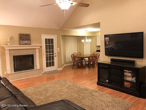 Move-in ready! Beautiful one-story ranch with 3 bedrooms and 3 full baths in Oldham County. 2,518 square feet of finished space. Open floor plan. Granite countertops in kitchen. Finished basement, perfect for adding a 4th bedroom. Incredible backyard with professionally-built tree fort. All major appliances stay. Improvements by current owner include newer roof, rebuilt chimney chase with ice/rain guard and stainless steel chase cover, gutter guards, brick mailbox, storm doors, newer doorknobs and hinges throughout the house, carpet in bedrooms, newer light fixtures throughout, hardwood steps leading to basement, landscaping, separate gas heating in basement, gas line for range in kitchen. Oldham County schools (Kenwood Station, South Oldham Middle and High School).