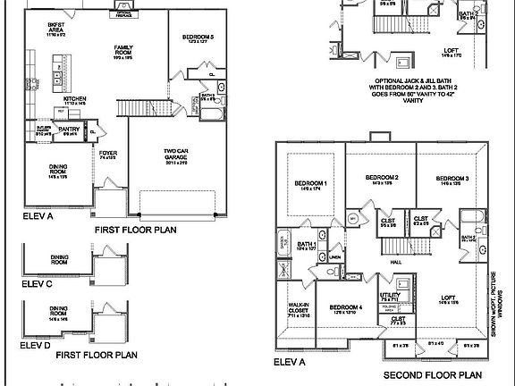 The Canterbury floor plan is a home with room to grow, with four upstairs bedrooms, a bedroom on the main floor with a full bath, and a spacious loft area on the second floor. The main level offers a covered front entry, which leads into the dining room and open family room. The kitchen is open to the living spaces and features an island, butler's pantry, walk-in pantry, and separate breakfast area. A drop-zone is placed off the garage entry. Upstairs, there are three spacious bedrooms surrounding the open loft area with additional storage closets. Bedrooms 2 and 3 has a Jack & Jill bathroom making a total of 4 full baths in the home. The primary bedroom suite is a spacious retreat, with tray ceiling, dual vanity, commode closet, walk-in closet, and multiple tub and shower combinations. Vented hood on the kitchen.