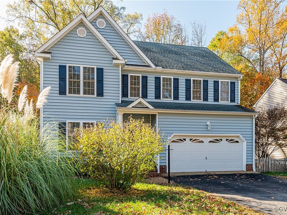 Gorgeous 4-bedroom, 2.5-bath home nestled in the heart of Henrico’s West End. This stunning property features a 2-car front-entry garage, mature trees, and a private fenced backyard. Step inside to 9-foot ceilings throughout the main floor, leading to an open-concept family room and kitchen with a sunny breakfast nook. Natural light fills the space, highlighting gleaming hardwood floors that span the entire first level. The kitchen boasts upgraded stainless steel appliances, granite countertops, and a welcoming eat-in area. Upstairs, you’ll find four generously sized bedrooms, including a primary suite with an en-suite bath and two spacious walk-in closets. A finished third-floor bonus room offers the perfect setup for a home theater. Recent upgrades include a new roof (2019), newer HVAC units (2017 and 2020), hot water heater (2020), and new kitchen appliances. The garage features vinyl flooring and its own heat/AC, adding flexible workspace options (not included in finished square footage). Situated in a prime West End neighborhood, this home is close to schools and the Innsbrook Business Park. A true must-see!