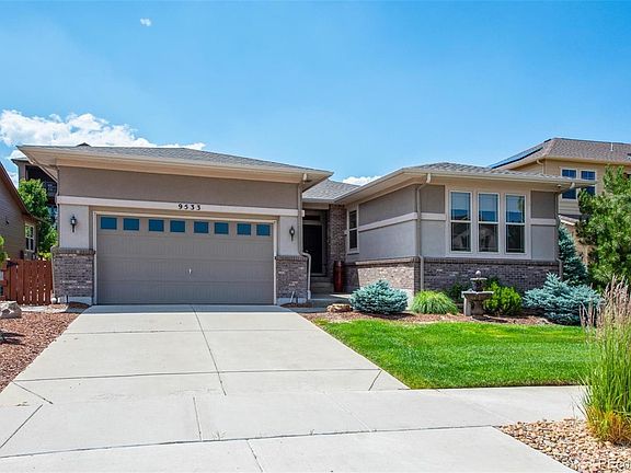 SELLER OFFERING $15,000 TOWARDS BUY DOWN OR CLSG. COSTS! This picturesque ranch style has curb appeal, 3-car tandem garage, professionally finished basement and more! The foyer has gorgeous designer quality wood flooring extending through the living areas of the main level. You are welcomed to the open-concept design with dining, great room & kitchen flowing together. The great room has a gas log fireplace for chilly winter evenings, speakers for a home theatre system & overlooks the optional "Colorado Room." The gourmet kitchen features upgraded stair-step cabinetry, granite, stainless appliances, gas range, double oven, walk-in pantry & huge island w/pendant light accents. The adjacent casual dining has a slider w/ a dog door. A cozy alcove just off the kitchen provides access to the garage. The primary suite has a coffered ceiling and plantations.The adjoining five-piece bath has dual walk-in closets and an oval soaking tub. A Jack 'n Jill bath connects the two secondary bedrooms. The main floor laundry includes a handy utility sink, washer & dryer. The lower level was professionally finished. It includes lots of additional living space. The family room has a gas log fireplace. There is space for a pool table & lighting is included. A handy kitchenette perfect for entertaining offers beautiful cabinetry, a sink & small refrigerator. What a great place to host parties! The basement bedroom includes a walk-in closet. You'll love the spa-like bath with its jetted tub/shower, linen closet & pedestal sink. The professionally designed backyard is gorgeous! The optional "Colorado Room" offers a protected space for entertaining or relaxing. A water feature and lovely plantings create a scenic backdrop to enjoy the hot tub. Raised planting areas, a pergola, speakers & a putting green add to the ambience. The 3-car tandem garage is insulated & sheet rocked with a coated floor & storage racks. Come see this picture-perfect home! Great access!