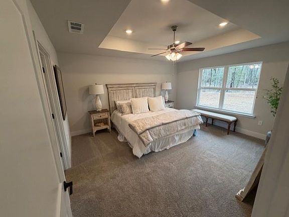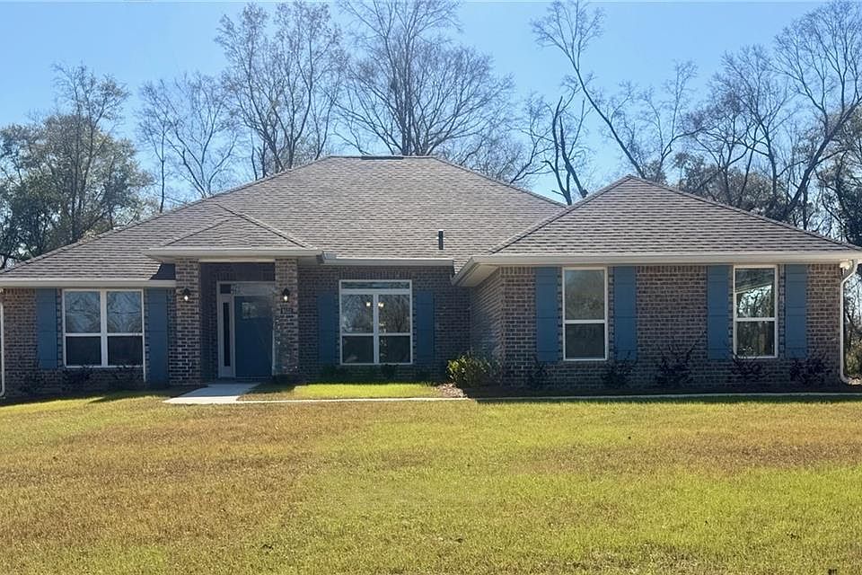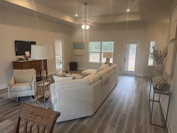Approximately 1.37-Acre Estate Lot! Big Lots, Itty Bitty Prices! Beautiful 4 sides brick New Home, country setting within close proximity to shopping. Southern Charm and modern living await. Come discover our new community offering a perfect balance of convenience and serenity with quick access to Mobile and Saraland via AL-158. You'll never be far from urban amenities while enjoying the peace of rural surroundings with lots spanning +-1.5 acres, providing ample space for your dreams to flourish. Each home is meticulously constructed with four-sided brick exteriors and fine attention to detail, ensuring lasting durability and timeless appeal. This home is GOLD Fortified which will save you money on your homeowner's insurance. Value is our cornerstone, and homeowners will find it plentiful at Vickers Estates. This 2300 sq ft design is a spacious single-story home featuring four bedrooms and three bathrooms. With a total of 2,300 square feet of living space, this home offers plenty of room for families or individuals looking for a comfortable and practical home. The main living area is an open-concept design, with the kitchen, dining, and living areas all flowing seamlessly together. The kitchen features a large countertop, plenty of cabinet and pantry space, and modern appliances. The dining area is near the kitchen for convenience and easy entertaining. The living room is spacious and offers plenty of natural light, making it an ideal space for relaxation and entertainment. The master bedroom is located at the back of the home and features two large walk-in closets and an ensuite bathroom with a double sink vanity, garden tub, and separate shower. The three additional bedrooms are located on the opposite side of the home and have access to two full bathrooms. This layout ensures that every member of the family or guest has their own space and privacy. This floor plan also includes a laundry room conveniently located near the garage entrance, making it easy to keep the home clean and organized. The covered porch at the back of the home is a perfect outdoor living space, offering a peaceful retreat to enjoy the sunshine.