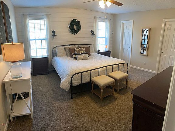 Hokes Bluff- This adorable house has so much to offer. Great Location and Great Neighborhood. this house is a 3 bedroom, 2 bath home and Features a Large living room with hardwood floors and Vaulted Ceiling. Eat in Kitchen with brand new LVP flooring, beautiful Cabinets and SS appliances. The Desirable Split floor plan features a master suite w/ 2 walk-in closets and good size rooms. Home has a New Metal roof, New vinyl siding, 2 car garage and sits on a large lot at the end of a cul-de-sac. New carpet in all 3 bedrooms, fenced in back yard, granite countertops in kitchen and both bathrooms!