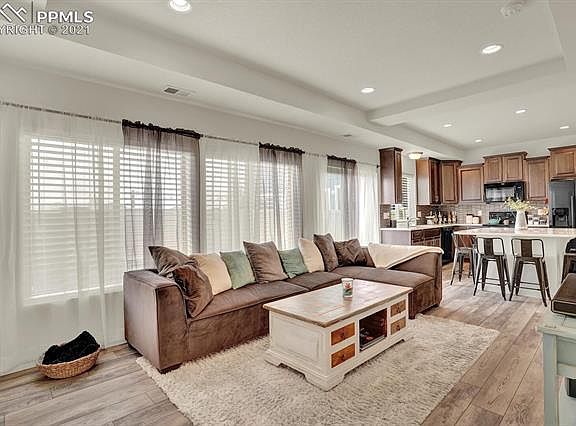 This Gorgeous 3 Story home is an absolute MUST-SEE!! The Seller has updated Everything for the New Buyer!! Beautiful High-End Laminate Flooring on Main Level / Enjoy the Warm & Inviting Living Room / Large Island w/ Quartz Countertop in Kitchen & Plenty of Counterspace for the Chefs / Gorgeous Soft Mineral-Stained Kitchen Cabinets / Amazing Custom Glass Kitchen Backsplash / Kitchen & Living Room are Perfect for Entertaining....Enjoy the large Master Bedroom w/ Walk-In Closet w/ a Beautiful Master Bathroom / All 3 Bedrooms & Laundry Room are located on the 2nd Level for ease & convenience....Just wait until you see the MASSIVE Loft w/ a Private Walkout Deck on the 3rd Level!! You will not want to leave!! Enjoy Gorgeous Mountain Views from the Loft!! The Backyard is a relaxing oasis w/ a 10 x 8 concrete patio / New Sod / Decorative Rock & Mulch / Wonderful for Entertaining Friends & Family....The Main Level & Loft are pre-wired for surround sound w/ Cat6 throughout the Home....Conveying w/ the Home are the Washer/Dryer, All TV Mounts on every level, Window Blinds, as well as the large workbench in the Garage / This Home is simply Immaculate & it's PERFECT for any VA Buyer and/or 1st time Home Buyer!! SO MANY EXTRAS & All you have to do is MOVE-IN!! Banning Lewis Ranch is a relaxing community located in a prime location and offers an abundance of incredible amenities including: Clubhouse / Pool / Waterpark / Access to a 24 hour Fitness Center / Pickleball & Tennis Courts / Dog Park / Numerous Parks & Playgrounds / Regular Community Events w/ Food Trucks, Games, Farmer's Market / 75 acres of Walking Trails & Open Spaces / Award Winning Charter School in District 49 / Close to Military Bases / Make this your Dream Home in Colorado Springs!