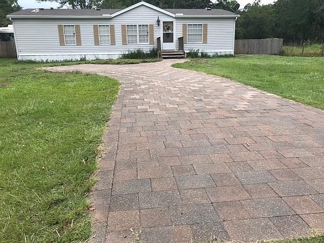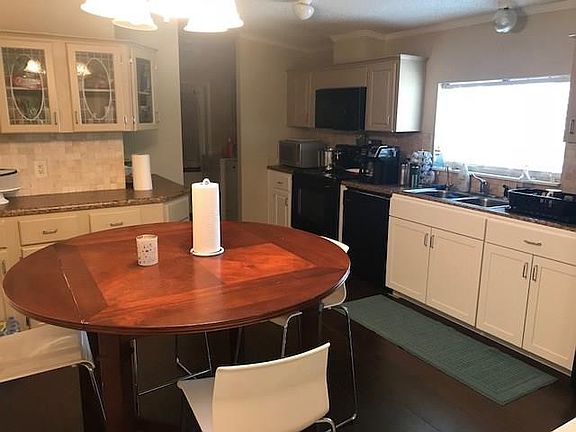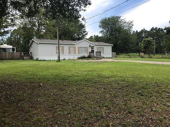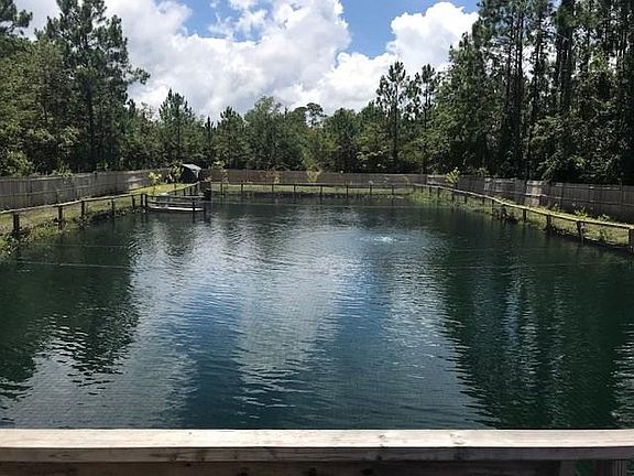 This 3/2, impeccably clean, 96' mobile home has it's very own 14' deep pond. The 1/3 acre pond is stocked with a variety of catfish & blue gill, with 2 feeding systems. The entire backyard is fenced, with fruit trees and well-kept landscape. The roof is only 3 years old. Vinyl plank flooring throughout the home, with carpet in bedrooms. Garden tub in master. This home has 2 wells; 1 for the house, and 1 artesian flowing that is used for the pond, and watering the fruit trees and lawn. 2 sheds are included. Paved driveway in front supplies ample parking. Located walking distance to Goffinsville park, with a public boat ramp, fishing dock, playground, & nature trails. Very recent appraisal available upon request.