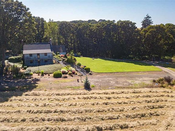 Pastoral 173 acres estate with working fields, standing timber, 2.3 acres of natural ponds, a farmhouse retreat in a secluded setting, a 2nd home, barnes & sheds, 54.9 ac. of water rights. 2 tax lots, composed of 63 acres Malabon silt clay loam, ideal for hazelnut production, 40+ acres sloped Helmick silt loam with a mixed forest; 25 ac Waldo silty clay loam, 15 ac Cove silty clay loam, 10 ac Coburg silty clay loam. The custom Home is 2006 ft², a 400ft² studio apt, the 2nd home is 1899ft². LSC with 10% down