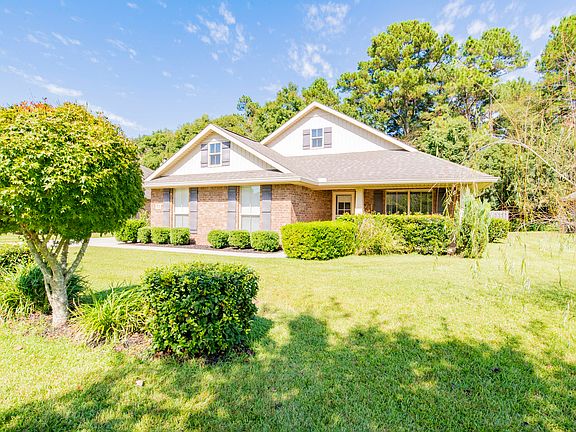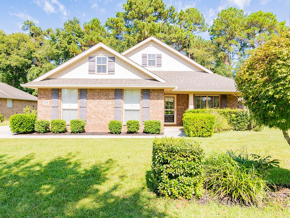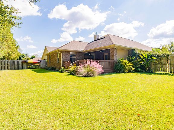 Super clean, energy efficient and move in ready! Split floor plan with large, open living and kitchen areas, including vaulted ceilings and woodburning fireplace. Huge master suite is located to rear of home and offers tray ceilings, a walk-in closet, sitting area and access to covered porch and deck. Large master bath has double vanities, shower and garden tub. All bedrooms and living room are carpeted and kitchen and bathrooms have easy to clean, no maintenance, vinyl tile. Kitchen is very functional, efficient and has an eat-in bar. Neutral paint color throughout house will work with most decors. Also includes blinds on all windows and doors. Laundry room and pantry conveniently located between kitchen and garage. Yard features low maintenance landscaping with added sprinkler system and 6' privacy fencing in back yard, which also includes double wide gates to allow additional parking for boats or trailers. Back yard is adjacent to large tract of heavily wooded acreage, which increases your enjoyment of the quiet and private yard. Brick exterior of home is also very low maintenance and includes front and rear covered porches, and a rear deck. Other added features are a gutter system around the entire home and an extra wide driveway which allows for ease of parking multiple vehicles. Home also has hurricane shutters for all windows and doors. Community pool with pool house, restrooms and huge 5+ acre greenspace, located in center of subdivision allows plenty of space for kids to play. This subdivision is very clean and well kept with prideful homeowners. This home is located near the west end of the subdivision, which is adjacent to additional acreage which offers a pastoral view of a beautiful field. This location within the subdivision offers quiet and safe living with very low traffic due to dead end street. We have awesome neighbors who are very helpful and watch out for each other. This house is smoke-free and in like-new condition, with absolutely no issues. Back patio deck was replaced in 2018. Enjoy dinner outside watching fireflies lighting up the woods or have a cup of coffee in the morning while watching hummingbirds zooming by. We are working professionals so please call for the appointment 251-209-7293 and leave a message. Thank you!