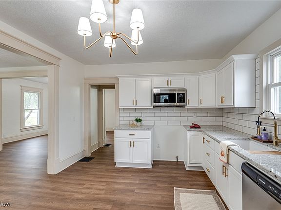 Welcome to 9535 Cleveland Ave NW, a newly renovated 4-bedroom, 2-full-bath home that perfectly balances timeless original charm with modern upgrades. This stunning home offers an inviting blend of classic woodwork and contemporary finishes, making it a must-see! As you enter, you’ll be greeted by the original wood bench and exquisite wood detailing along the staircase and railing. The spacious living and dining rooms feature high ceilings and large windows that fill the space with natural light and offer lovely views. The heart of the home is the all-new kitchen, complete with granite countertops, a composite quartz undermount sink, and a stylish subway tile backsplash. Just off the kitchen is a convenient first-floor laundry room and a newly added full bath with a shower and pedestal sink. Upstairs, you'll find four generous bedrooms with ample closet space and new carpeting throughout. The luxurious main bathroom is a true showstopper, featuring a walk-in tiled shower with natural light streaming in from two skylights, a large soaking tub, and a double vanity with granite countertops.