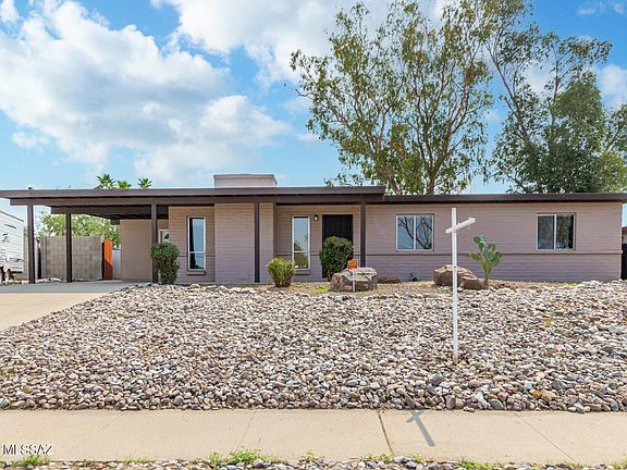Located on Tucson's beautiful east side is this updated home situated on a quiet cul de-sac. This move in ready 3 bedroom, 2 bathroom home has 18 inch ceramic tile in main living space. Kitchen is bright and open with eat in breakfast bar as well as a separate dining space. Hall bath has a tub/shower combo with custom tile surround. Master bedroom is spacious with a on suite bathroom that includes a walk in shower with custom tile surround. Ceiling fans in all bedrooms. Low maintenance front and back yard, mature trees with east and west exposure. Large laundry room with large closet for extra storage. Back yard has a free standing storage shed for additional storage options. Come take a look you don't want to miss this east side gem.