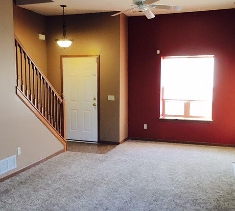What a Find...This home is move in ready with new carpet and laminate flooring throughout most of the home. You will love the high ceiling and fireplace as you enter the Great Room. You will love the eat in kitchen with appliances 2yrs or less yrs. old. Open Concept The Master Bedroom is located on the main floor with a large walk in closet an a master bath. One additional half bath located off the Great Room. The second and third bedroom are located on the second floor with a full bathroom. Nice size bedrooms have very large closets. The back yard has a patio slab, an a deck. There is a wooded play set toward the back of the property. This home is just minutes stores and 469 and won't last long.