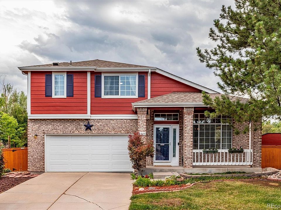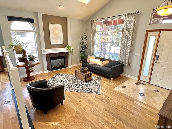 Welcome home to this lovely 2792 finished sq ft, 4 bed, 4 bath home located in a cul-de-sac near High School and Middle School! This home offers a light, bright and airy floor plan with vaulted Living Room upon entry. The updated kitchen offers Granite countertops, tile backsplash, large one-bowl sink, prep island and NEWER Stainless appliances! Cook plenty on the fabulous 6-burner Gas Stove! Built-in bar style seating also adds extra storage with pull out drawers! Dining Room offers space for a large table to seat many! Cozy Family Room has the second gas fireplace and you can step outside to the very spacious and private back yard with plenty of room to spread out for BBQ's or let pets explore! Main floor laundry & half bath are tucked out of sight yet convenient. The upper level provides a beautiful Primary bedroom with vaulted ceiling, wood feature wall, 3/4 bath with dual sinks & shower heads, privacy barn door and a spacious walk-in closet! Two guests rooms are adjoined by a Jack-n-Jill bath that offers a large soaker tub and a fresh new vanity & light fixture! The finished basement will excite you as it hosts a second family room to use as needed, a 4th bedroom and a gorgeous 3/4 bathroom with beautiful tiled shower! The 2-car garage has a heater, is insulated and comes with a Smart opener and an access door to the back yard. Updates per sellers include: Ext Paint, Roof / Gutters, South & West facing windows approximately 5 years old. A/C 2015. Water Heater 2018. Smart Thermostat. Updated light fixtures and ceiling fans throughout. Kitchen appliances, water softener, washer and dryer are ALL included. This home is located near Eastridge Rec Center, The Links Golf Course, shopping, restaurants, parks, trails, medical services, I25 and C470! *Solar Panels are a huge bonus and provide low monthly bill! *Xeriscaped back yard means LOW water bills! *Radon Mitigation.