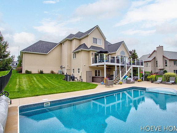 Beautiful 5 bedroom, 3.5 bath featuring a spacious kitchen with quartz countertops, new appliances, and hardwood flooring. A spacious living room with vaulted ceilings, and convenient mudroom/ laundry nearby. The main floor master suite offers double closets and large ensuite bathroom. A main floor office provides the perfect place for a quiet workspace or can be converted to a formal dining room. Upstairs, you'll find three bedrooms and another full bathroom. The walk-out lower level is a true gem with a fifth bedroom, full bath/second laundry with quartz countertop, kitchenette, and theater room with gas fireplace and new 120'' screen and built-in sound system. In addition to all of this, you will love the backyard oasis, complete with a large deck and lower-level patio, a newer in -ground heated pool, hot tub, brand-new custom-built outbuilding for storage or hobbies. New roof, garage doors, windows, and fixtures. Don't miss out on this opportunity - call today to make this dream home yours!