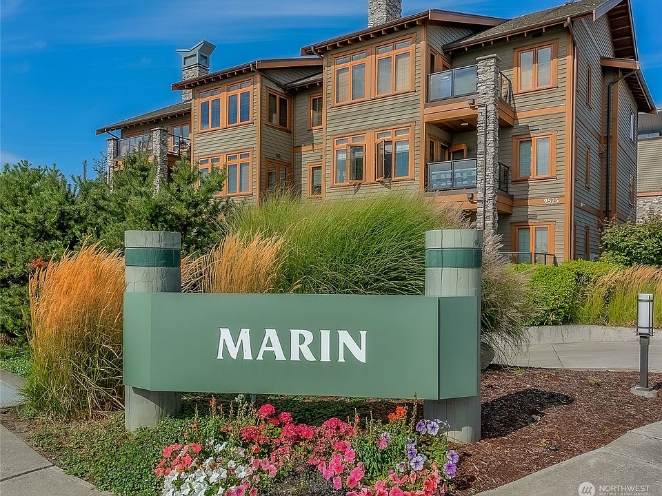 Immerse in luxury at Marin's waterfront penthouse. This pristine turnkey condo in Marin, Semiahmoo, boasts 2 beds, 2 baths, vaulted ceilings, and radiant floor heating across 1250 sq ft. Revel in a granite-stainless kitchen with ample cabinets, a gas fireplace, and a scenic deck. Primary ensuite offers dual closets. Primary bath includes radiant floor heating, double vanity, soaking tub, glass shower with tile surrounds and huge mirror. Gated underground parking and storage. Option for bundled 44 ft slip D28, the Semiahmoo Marina is just across the street. Dive into Semiahmoo's lifestyle and amenities with biking, hiking, tide walks, boating, golfing at the award winning Arnold Palmer designed Semiahmoo Golf and Country Club. See it soon!