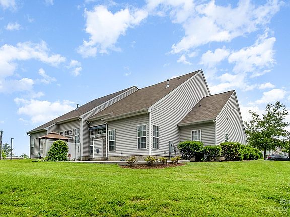 Enjoy carefree living in this beautiful end unit townhome in Moss Creek. The backyard is wooded and private with an extended patio covered by an automatic sunsetter awning. Primary bedroom down and two bedrooms up with an upstairs den area. Kitchen and formal dining eating areas, cathedral ceiling with gas log fireplace in the great room. Tons of walk in storage !! Very spacious townhome.