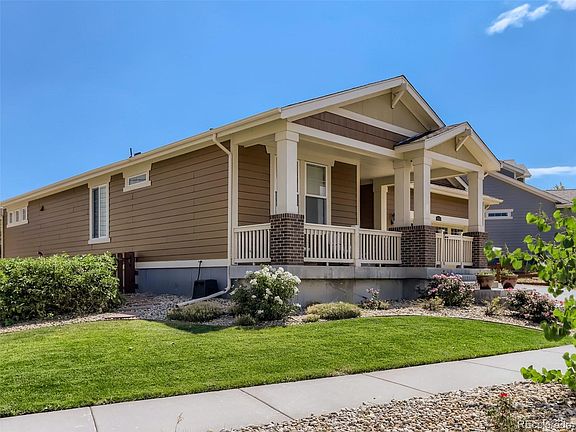 Gorgeous ranch home on the west side of the sought after Candelas neighborhood. Welcoming front entrance with a covered front porch to enjoy the beautiful mountain views on a warm summer night or a fresh morning cup of coffee. This home includes a ton of upgrades including green home features such as solar, coffered ceilings, arched entries, granite and hardwood floors. This floorplan has a rare fourth bedroom and features a spacious floorplan with a beautiful gourmet kitchen with granite countertops, gas cooktop, double ovens, walk-in pantry and kitchen island. The dining area is open to the cozy great room with a gas fireplace. The front of the home has two bedrooms and a full bath and the back of the house has the master suite with a five piece bath and secondary bedroom and three-quarter bath. The laundry room has cabinets and a utility sink and is right next to the mud room coming in from the garage. The full basement has rough in plumbing and is ready for your finishes. The back patio is wonderful for entertaining and the landscaping is simple, crisp and clean which makes it easy to take care.