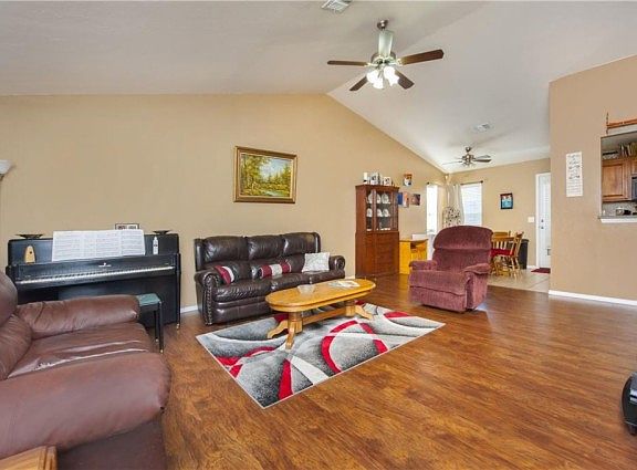 Beautiful well maintained home. Open floor plan with vaulted ceiling in living area. Laundry room. Newer wood grain laminate floors in living with nice carpet and tile in remainder. Fenced Back yard. Addition has playground, walking trail and catch-release pond. Close to schools, shopping, medical, and churches