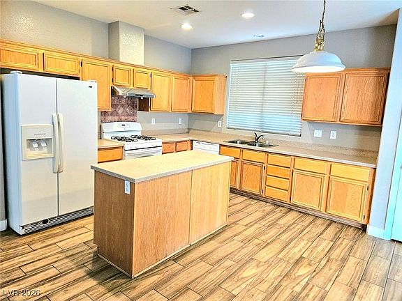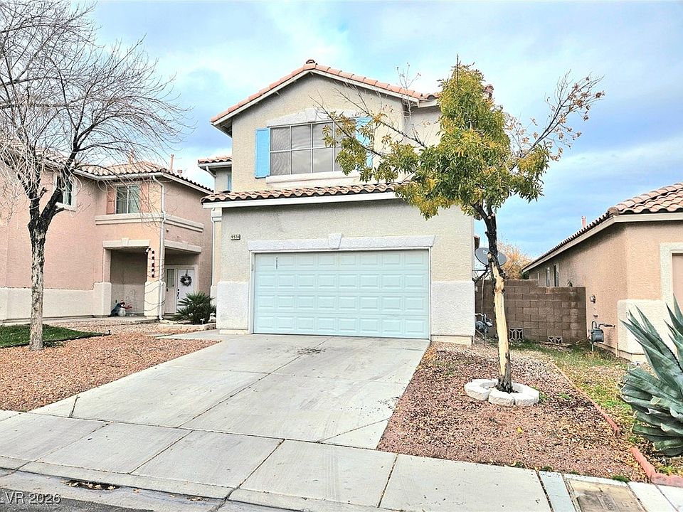 NO HOA FEE. A lovely 2-story home in excellent SW location. this house features spacious floor plan, 4BEDS 3BATHS 2 garages, w/ high ceiling living room downstairs at front , large family room & separate formal dining room downstairs, huge great room upstairs, one bedroom is located downstairs w/ 3/4 bath downstairs. Upstairs have brand new carpet, brand new smoke detectors all over, newly wooden like tiles downstairs, brand new water proof wooden laminated floorings in wet area upstairs. Brand new garage controller in garage, new modern vanity lights in both upstairs bathroom. This property is almost 2600 sq ft, w/many rooms that fit everyone's need in the family. Good size kitchen w/ kitchen island, facing the covered patio at the back. Mature dessert landscaping in front & backyard, convenient location w/ easy access to shopping and restaurants nearby, fast access to I15 & 215 freeway within 1 mile, few mins to China town & Strip. Quiet neighborhood. Good value. MUST SEE.