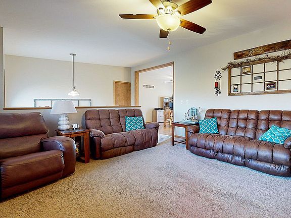 This beautiful acreage is located in the country, near town. A highly desirable location right off the highway with plenty of privacy and only 5 minutes to the grocery store. A four-stall attached garage with 2 stalls in the front of the home and 2 stalls in the back. The main level has plush carpet and laminate floors and a vaulted ceiling. The main level has 3 bedrooms, 2 full baths, and laundry. The kitchen features laminate floors, laminate counters, and a breakfast bar. Appliances stay with the home. The primary bedroom is located on the main level and features carpet floors and a walk-in closet. The primary bedroom's attached bath includes vinyl floors, laminate counters, and Tub/Shower Combo. The finished lower level features a wet bar, family room, full bath, and storage area. Outside you'll find a composite deck overlooking the peaceful backyard of the acreage. Exterior features include a great view and a multipurpose outbuilding. There is plenty of area for outdoor activities on the 2-acre property! Call or email today for a private showing. Property Improvements: - Well Pump - 2012 - Roof - 2014 - Garage Doors & Openers (Front of Home) - 2013 - Window Screens - 2022 - Back Garage Siding & Door Trim - 2022 - Basement Remodel - 2016 - Fresh Gravel - 2022 - New Carpet (in Spare Bedrooms) - 2018 - New Outbuilding Garage Doors - 2014