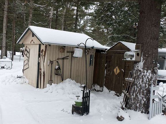 Very neat clean and cozy, currently used as a year round home. Would make a great Up North get away with access from both the front and rear of the property. This 2 bed room has larger rooms, large open living room and kitchen, nice size bath. Attached garage, storage sheds, note carport and wood burner in Garage not included n sale.