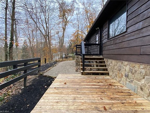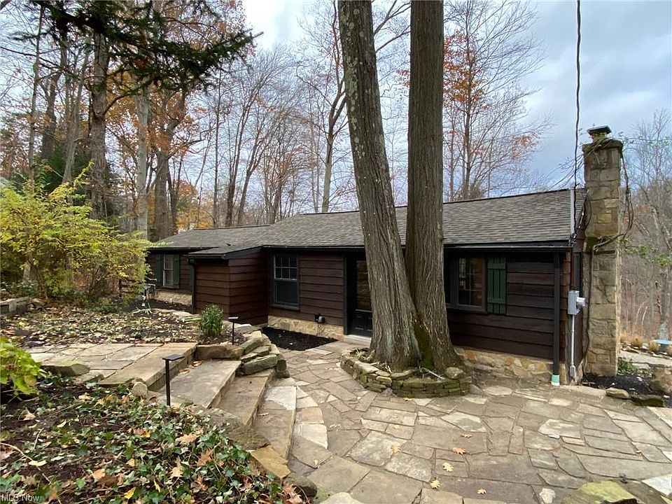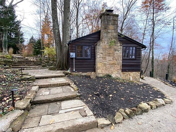 ENJOY CHAGRIN RIVER VIEWS!! Beautifully Renovated inside & out and top to bottom....This hillside Rustic Ranch is nested on 1 park-like acre and sits directly on the Chagrin River! The extensive sandstone/flagstone walkway, steps and patio welcomes you into the stunning Great Room with vaulted tongue & groove wood and beamed ceilings, stone wood burning fireplace, built-in bookshelves, access to deck and gorgeous hickory hardwood floors through to the Kitchen with all new cabinetry, counters, fixtures and stainless steel appliances. Spacious Master Bedroom with decorative trey ceiling, walk-in closet, wet bar & wine fridge. French doors lead you into the guest bedroom. Full Bath has all new ceramic flooring, shower, vanity & sink. Walk-out basement includes laundry area & bonus room for you to finish for additional living space. This complete remodel includes so many major improvements: New Septic System, all new Roof & Gutters, Gas Furnace, Central Air, HWT, well pump, electrical service, lighting, plumbing & all fixtures, interior & exterior waterproofing, exterior stone & foundation, freshly stained cedar siding & so much more. Stone lined circle driveway. Retreat to the country, relax on the patio, deck or balcony and enjoy the peaceful views of nature. Much thought and care has been put into this renovation, absolutely nothing to do but move right in!