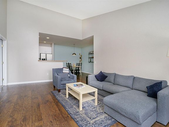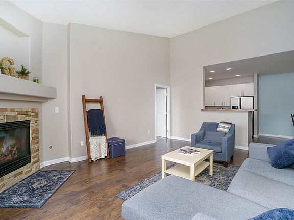Third floor condo with GARAGE & CARPORT! Updated throughout. Large dining space. Open concept living & TONS of natural light. Spacious living room w/ cozy gas fireplace. Master suite w/walk-in closet & private bath. 2nd bedroom is private and adjacent to 2nd bath. Gorgeous wide plank laminate flooring throughout the living room, dining room & kitchen. Kitchen has a modern flare with stainless steel appliances. Large laundry/utility room. Private deck off of living room. Within walking distance to trails, parks and shopping!