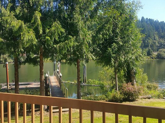 Amazing Siuslaw River property with deep water frontage, dock and ramp. Well maintained home and grounds show pride of ownership. Warm and inviting with large windows overlooking the river and surrounding property. Clean, modern but classic wood-beam interior, solid surface counters in kitchen and baths, newer appliances. Detached garage shop with additional carport/boat covering. Must see- won't last.