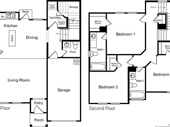 The Ellington is a two-story, 1508 sq. ft., 3-bedroom, 2.5-bathroom floor plan designed to provide you with spacious & comfortable living. The entry of the home immediately opens to the spacious living area, perfect for hosting. The living area is adjacent to the large open kitchen and dining area. Enjoy preparing meals and spending time gathered around the kitchen island. The utility room includes a large additional storage closet and is located down the hall from the first-floor half-bath. Upstairs, you will find the bedroom 1 suite, two secondary bedrooms, and a secondary full bathroom. Each bedroom includes a walk-in closet. You'll enjoy added security in your new home with our Home is Connected features. Using one central hub that talks to all the devices in your home, you can control the lights, thermostat and locks, all from your cellular device. Additional features include sheet vinyl flooring at entry, downstairs living areas and wet areas, stainless steel appliances, and much more!