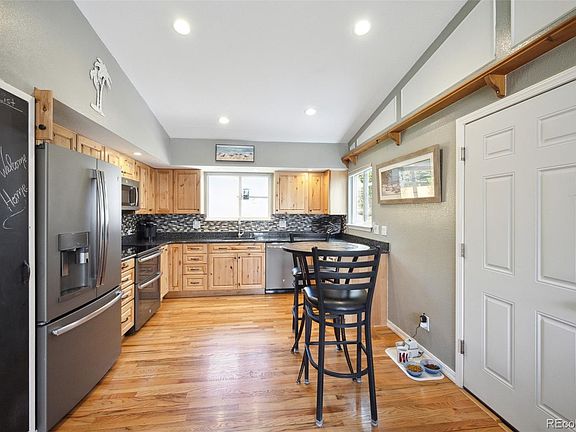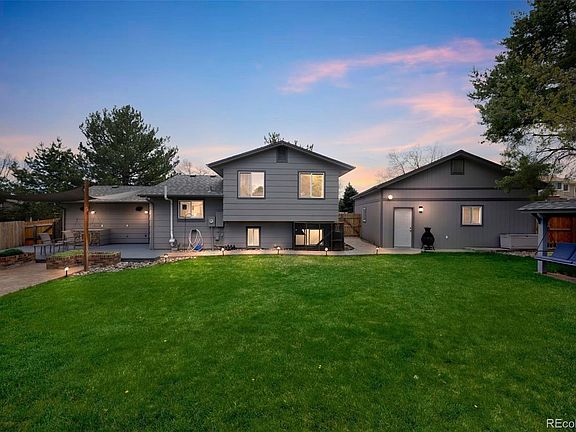 Welcome to this gorgeous Updated/Remodeled home in the heart of Littleton with NO HOA! Your future home is located on nearly 1/4 acre double lot, and offers 4 Bedrooms and 2 Bathrooms. The main level of this split level home welcomes you with beautiful wood flooring, a Living Room, and an updated Kitchen. The Kitchen features upgraded soft-close cabinetry, granite-slab countertops, double ovens, Keurig on the refrigerator, and brand new dishwasher. The upper level has 2 Bedrooms and a full bath. The lower level has been converted into a spacious Primary Suite with walk-in closet (which could be an additional bedroom, if needed) and a 3/4 bath. Laundry is also located in the lower level and washer and dryer are included. New carpet throughout the home. There is a large crawl space for your storage needs. Outside, you’ll find a private backyard oasis with the large yard which has new fencing, a garden area, smart lawn sprinklers, stamped concrete, deck and patio, fire pit, and on-at-sunset-off-at-sunrise safety light. Parking and projects are a breeze with an attached 2-car garage (painted floor), RV parking, and a detached 2-car garage/workshop with heat. Both garages include attic storage. Workshop has 10’ door with 30 and 50 amp service, and heated with gas forced air and has a smart garage door. There is also 10x16 Shed with electricity. Home is freshly painted, and there is plenty of parking for your guests. Look no further!
