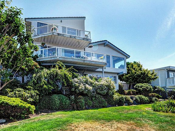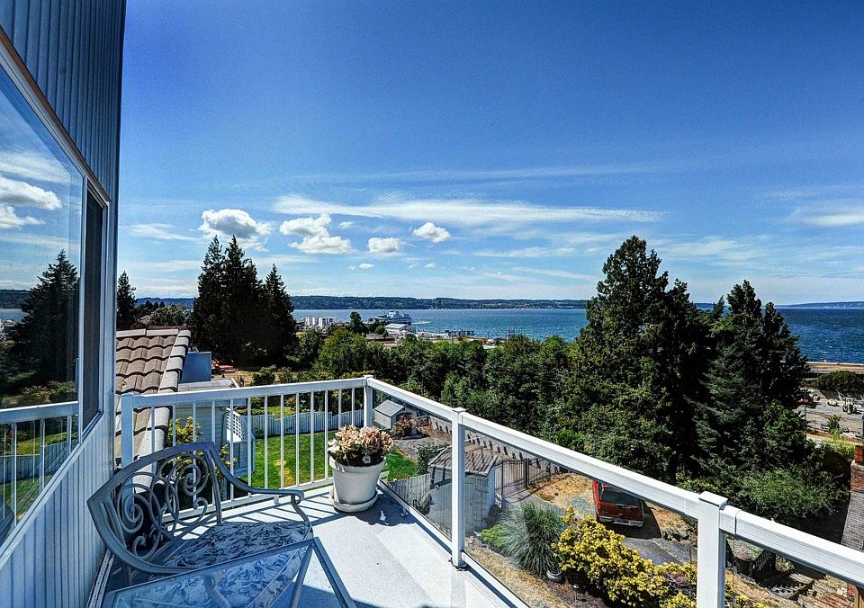 Amazing views of the Puget Sound, Whidbey Island and the Olympic Mountains! Watch the ferries all day! Three level home with the top level being your private master bedroom and bath with Jacuzzi tub. Enjoy entertaining with an oversize kitchen fitted with double ovens and large walk-in pantry. You have a deck on every level, and your view is protected as your water side neighbor cannot build any higher. You get a complete second kitchen downstairs for your long term guests as well!