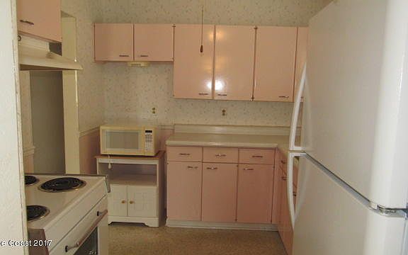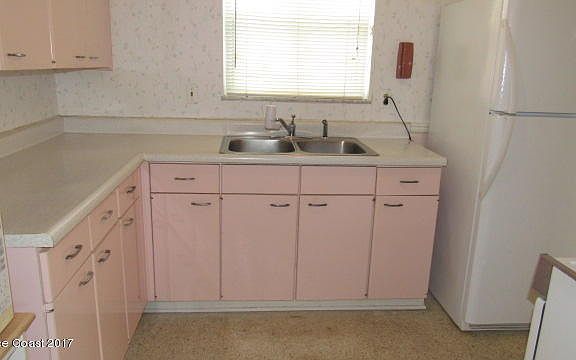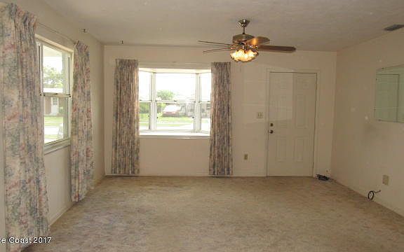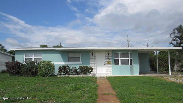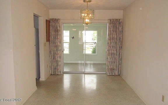 Well kept 3 bedroom, 1 and half bath, 1 car carport home with new enclosed porch. Located a few blocks from Indian River and US 1 and 15 minutes to the beaches. Concrete block constructed home. Great room concept. Living room has carpet and dining area has terrazzo flooring.The dining room has sliding doors to the enclosed porch. The kitchen, bedrooms and bathrooms have terrazzo floors. The kitchen has an electric range and refrigerator. The half bath is off the master bedroom.The utility room is off the carport. There is a large shed in the chain length fenced back yard. New HVAC system. City water and city sewer. Home has a lawn sprinkler system. There are sidewalks and parks in this community.
