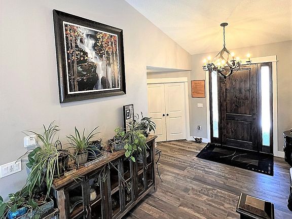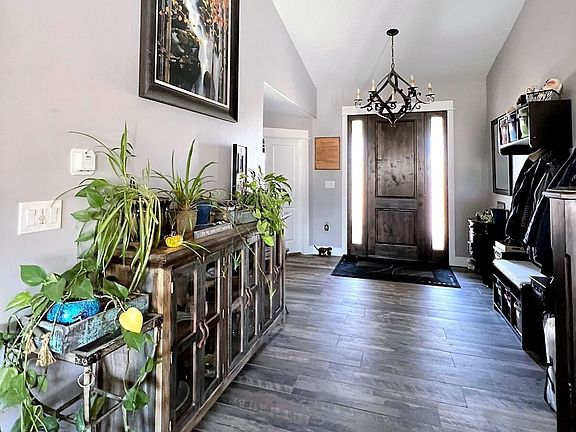 Fully custom 4 Bedroom 2.5 Bathroom, Braemar Emma model home, located on a beautiful lot across from the Horse Palace with Beautiful views of the Rubies. This home features upgrades galore, granite counter tops, lighting fixture throughout, tile and stone work throughout. Every detail in this home was specifically thought out and created for the comfort of the owners. Extra large front entry way with 8 foot front door, leads in the great room. Extra stone work throughout for a little pop, surrounds pantry, island bar and pellet stove. Master Suite has a large spacious main room, behind the barn door a bathroom that features a large walk-in shower with dual shower heads one being a rain head, jetted tub, double sink. Behind the other bar door a large walk-in closet with built in shelving, and large windows for the un-encumbered view of the Rubies. The garage is extra large at over 1500 square feet it has built in shelving throughout. Out the back French doors is the large fenced yard, patio, green house and large dog kennel. There is a concrete pad on the side for RV parking with full hook ups. Owner is the Selling agent, book to see this awesome home, it will not last long.
