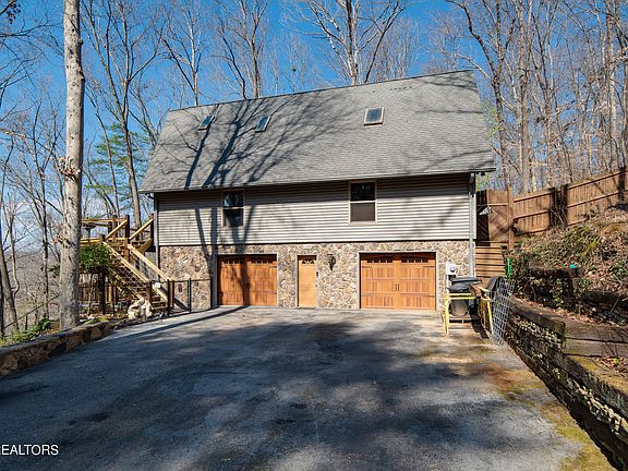 This custom A frame sits on the hill above Caney Creek park.  Public boat ramp is very close.  Extra covered parking and a greenhouse with decking all around.  Custom landscaping with herbs already planted.  Beautiful kitchen with two gas fireplaces and gorgeous views of Caney Creek.  Lots of living space with a workshop.  Lots of trees and windows.