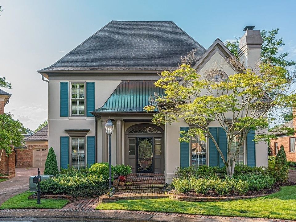 Sophisticated & Elegant hm in Gated River Oaks Community. Gleaming marble foyer, LR w handsome FP, custom built-ins & rich HW, Grand DR w plantation shutters & heavy millwork! Renovated Kit~creamy white cabinetry, granite counters & SS appliances opens to charming keeping rm w tile flrs, & expansive windows & views to beautifully landscaped yd & terraces! Primary BR dn+Lux BA & 2 lg walk-in cl, 2nd BR dn/study w lg closet & BA. 3 BR & 2 BA up. Beautiful condition! Block from Greenline!