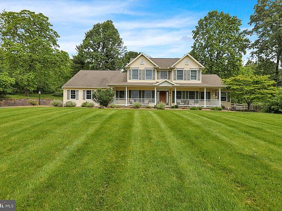 Welcome to your own slice of paradise nestled on nearly two acres of private, cleared land embraced by majestic trees. This stunning 3-bedroom, 2.5-bathroom home seamlessly blends countryside charm with contemporary luxury. Step onto the inviting covered front porch that spans the entire facade before entering this thoughtfully designed residence. The formal living room offers a perfect setting for entertaining, while the first-floor office provides a dedicated workspace for remote professionals. Retreat to the main-level primary bedroom featuring an expansive walk-in closet and luxurious full bathroom with a double vanity. The heart of this home is the breathtaking great room with soaring ceilings, a cozy propane fireplace, and a unique balcony overlook. No expense was spared in the brand-new custom kitchen, showcasing soft-close drawers, a farmhouse sink, gleaming quartz countertops, stainless steel appliances, recessed lighting with nightlight feature, walk-in pantry, and elegant crown molding. Upstairs, you'll discover two spacious bedrooms, each with generous walk-in closets, connected by an impressive loft area that overlooks the great room. The full bathroom features a double vanity and tub/shower combination. Additional amenities include engineered wood flooring on the main level, neutral carpeting upstairs, ceiling fans throughout, a whole-house generator, and a massive basement ready for customization. Outside, enjoy a securely fenced backyard featuring beautiful landscaping with a serene pond. Conveniently located near major highways while maintaining its peaceful countryside ambiance, this exceptional property offers the perfect balance of privacy and accessibility.