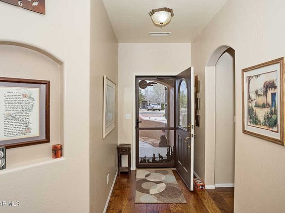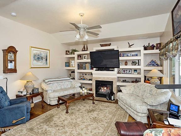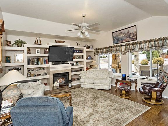 The curb appeal of this home draws you in and makes you want to take a closer look. Inside and through the foyer the tall ceilings give the home a spacious feel, built-ins surround the gas fireplace and make this the focal point of the living room. The kitchen has lots of storage, stainless steel appliances, quartz countertops, and plenty of bar seating. Large windows in the eat-in kitchen let in a ton of natural light. This home is almost 2000 sq ft, with 3 bedrooms, a den/dining room, and 2 baths. The main suite has dual sinks and a walk-in closet. Outside the expanded patio offers both covered and uncovered areas and the outdoor kitchen is perfect for entertaining family and friends. The entire 1 acre has mature low maintenance landscaping on a drip system. See supplement