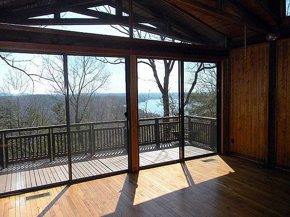 Live among the treetops with breathtaking FULL unobstructed lake mountain views! Great room features vaulted, beamed wood ceilings, cozy sunken living area surrounded stone fireplace w/wood stove insert! Main level master w/private deck w/spectacular mountain lake views. Spiral staircase to 2 bedrooms full bath - each bedroom w/access to tiled sunroom - bring the Hot Tub! Large storage room w/separate entrance. 2 Lots - total over 1 acre w/ 2 driveways!