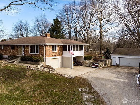 Raised ranch on nearly 3 acres now available in Sugarcreek Township! House backs up to a reserve so no rear neighbors! Entryway with exposed brick wall connects living room and hall to bedrooms. Relax in the living room with wood burning fireplace. The eat in kitchen offers an island open to great room featuring gorgeous ceiling beams with amazing views of the property. Backyard access to gorgeous deck is directly off Family room. Picture yourself relaxing in the 3 season room with updated flooring! All 3 bedrooms, full and half baths on main level. Primary bedroom features remodeled half bath & dual closets (Opportunity to make full bath). Two bedroom closets are cedar lined. Finished basement features another bathroom with stand up shower, rec room, laundry, workshop, 16.5' x 10' safe room (locked) & ample storage. Enter the basement via 2 Car Attached Garage. There's also an additional 2.5 car detached garage! Beautiful homestead-ready backyard boasts apple, cherry, pear and peach trees, 37 recently planted arborvitae trees, and a garden yielding blueberries, strawberries, raspberries and blackberries!!!