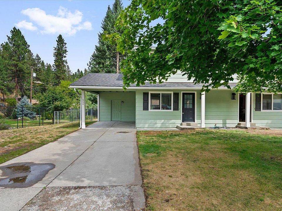 Quaint & cozy duplex, newly remodeled within minutes of downtown Coeur d Alene, Fernan Lake Village, lake access, golf courses, restaurants, schools, shopping & more - A great location! Downstairs features a large & open living space with brand new LVP flooring, spacious kitchen with all new stainless steel appliances & custom quartz countertops including a beautiful island with built-in seating & table, large mudroom & laundry room with utility sink, and half bathroom. Upstairs features 2 large bedrooms and a full bathroom w/tub & tiled shower. The exterior has a large carport, driveway, RV parking, and large fully fenced backyard. This home has been remodeled with all new paint, flooring, appliances, blinds, roof, gutters, and deck! 12 month lease or longer, tenant is responsible to pay all the utilities Pets considered, no cats allowed $ 75 application fee plus credit & background check required