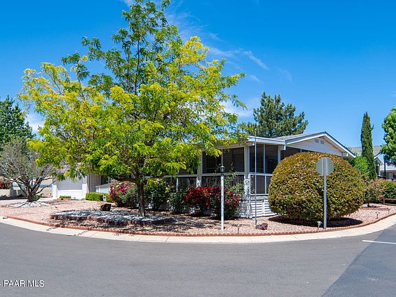 Fantastic corner lot home with wonderful views of the golf course & mountains. The home sits at the corner of Ponderosa Pine & Travertine & has mature trees & bushes. Enjoy the mornings on your screened wrap-around porch. The great room of this home is light & airy. There is a wonderful 2 car garage. The workshop is a woodworkers/hobbyist's dream space. Come enjoy the 55+ community clubhouse, pool, pickle ball courts, woodworking shop, game room, & golf!