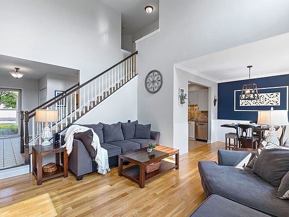Beautiful townhome located in the Oak Ridge sub-division. Great open family room with lots of natural light. Kitchen has all new stainless steel appliances with white cabinets. The deck off of the dining room is new with composite wood and is one of a handful of homes that has a gate to enclose the area. Upstairs the primary bedroom is very spacious and the closet has a new custom closet system. There are 2 other bedrooms upstairs and a hall bath. The basement is finished and is a great space for entertaining. Basement has a bar, a gas log fireplace and full bathroom with an amazing shower.