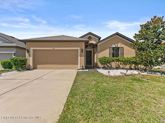 Step inside this beautifully maintained 2019 home and you'll immediately notice the TALL CEILINGS and bright, OPEN LAYOUT that feels so inviting. The SPLIT-BEDROOM design is perfect for giving family or guests their own private space. With TILE FLOORING throughout, upkeep is a breeze—no carpet anywhere! The heart of the home is the kitchen, seamlessly connected to the living room, making it ideal for both everyday living and entertaining. You'll love the rich 42'' walnut wood cabinets, GRANITE countertops, and STAINLESS STEEL appliances. A spacious family room and a separate formal dining room have plenty of options for gathering. The primary suite is a true retreat, featuring a walk-in closet and a spa-like En suite with double sinks and a large, WHEELCHAIR-ACCESSIBLE walk-in shower. Additional highlights include an inside laundry room and a large, fully VINYL FENCED backyard with an open lanai—just right for relaxing outdoors or hosting a barbecue. Low HOA fees (199/quarter) give you access to wonderful COMMUNITY AMMENITIES, including a sparkling pool, clubhouse, and sidewalks for evening strolls. The LOCATION, LOCATION, LOCATION couldn't be more convenient—close to shopping, dining, and just minutes from the Suncoast Veterans Expressway for an easy drive to Tampa, the airport, and more. Come see this MOVE-IN READY home today. Fall in love and make it yours!